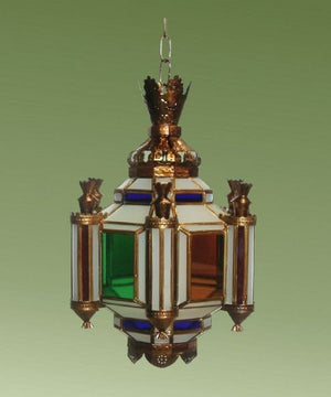 Lámpara granadina realizada artesanalmente con las técnicas y diseños usados por andaluíes en la epoca de Al-Andalus.