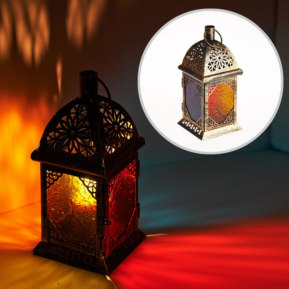 Farol Envejecido- Rectángulo- Cristal Multicolor- 22 cm