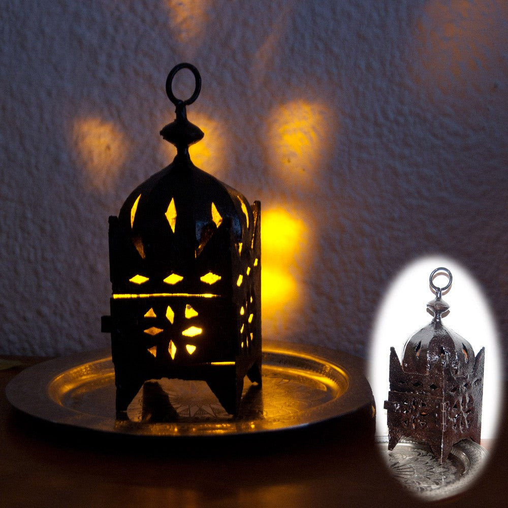 Farolillo cuadrado mini hecho en forja para vela.¡¡¡Una monada!!! Mide menos de un palmo.Objeto muy simple y decorativo para cualquier ambiente, especialmente árabe.