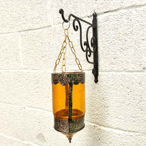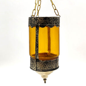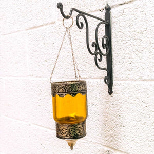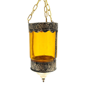 Farol Portavelas Lampara Colgante de Cristal y Alpaca -Amarillo- Decoración Andalusí Iluminación Árabe - Modelo Zuyaya