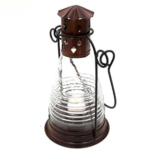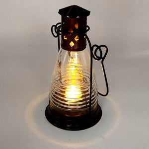 Farol para vela. Hecho en forja y cristal. Medidas: Diámetro: 13 cm Alto: 32 cm.