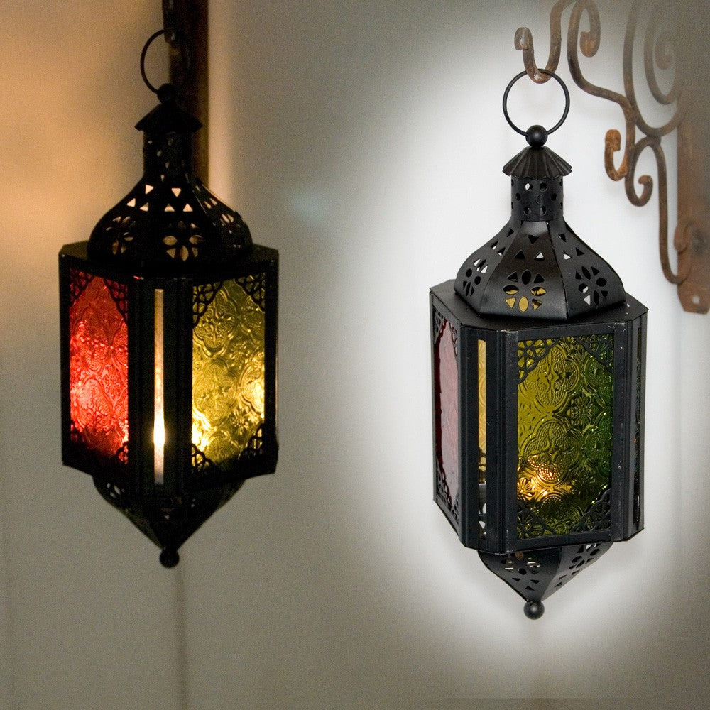 Farol Vela Cuadrado Colgar - Calado Arabe - Multicolor