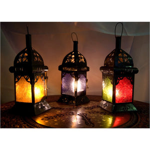 Farol cuadrado de cristal para vela. Solamente disponible en multicolor. Muy bonito.