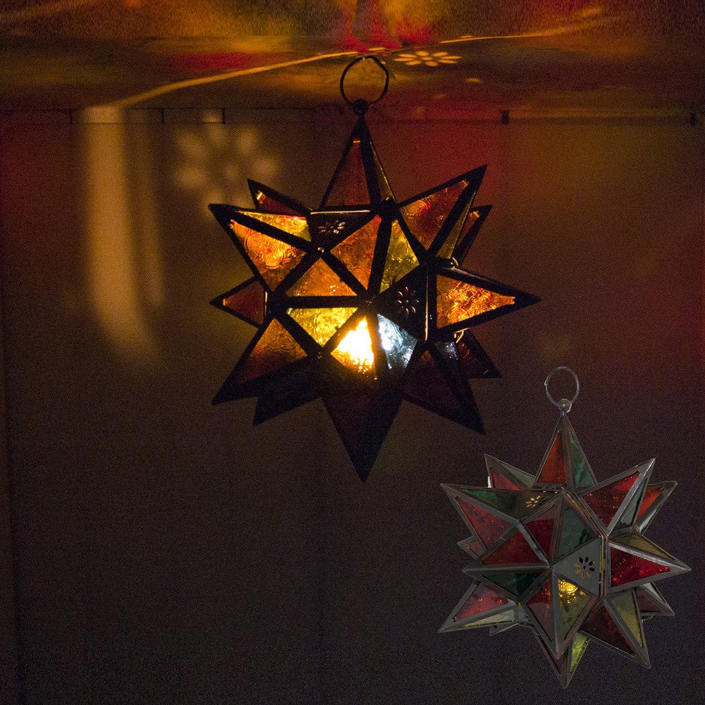 Farol Vela Estrella Multicolor-Calado Arabe - 18 puntas - 35 cm