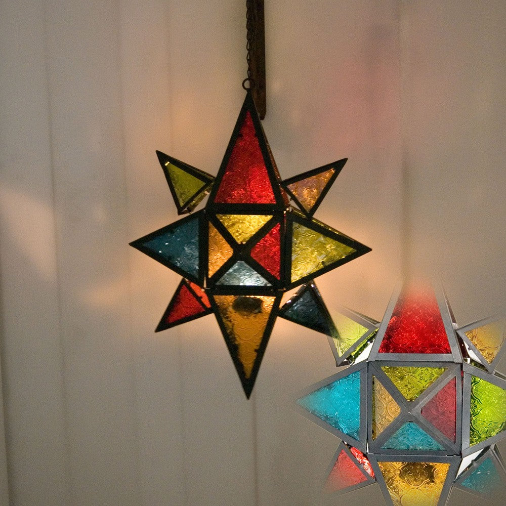 Farol Vela Estrella Multicolor Grande -Calado Arabe-Cadena 35 cm