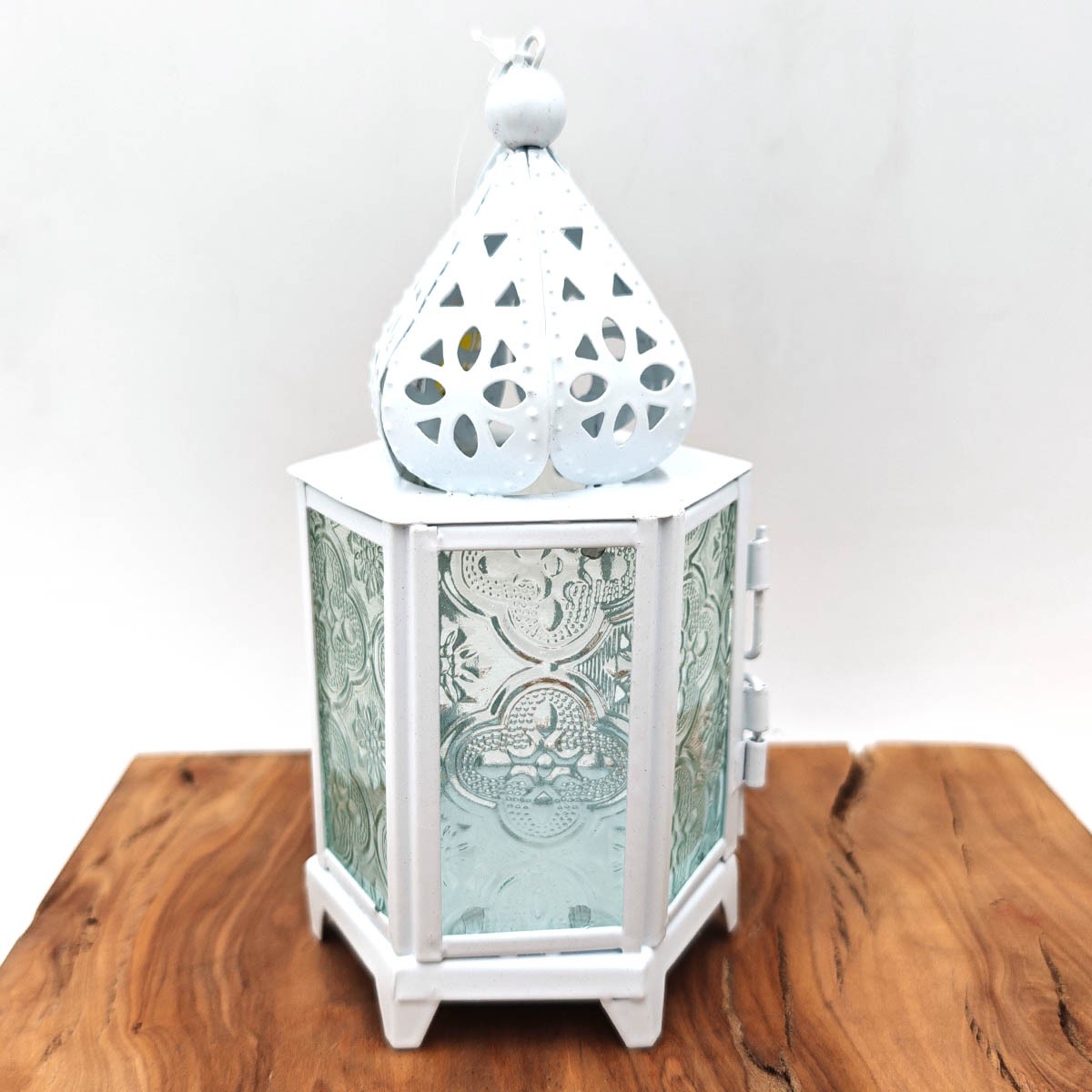 Farolillo Árabe Calado - Blanco - Vela - 18 cm x 9 cm - Modelo 953