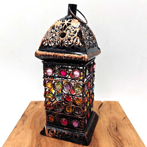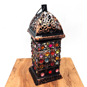 Farolillo Árabe Calado - Cobre Manchado - Vela - 23 cm x 9,5 cm - Modelo 013