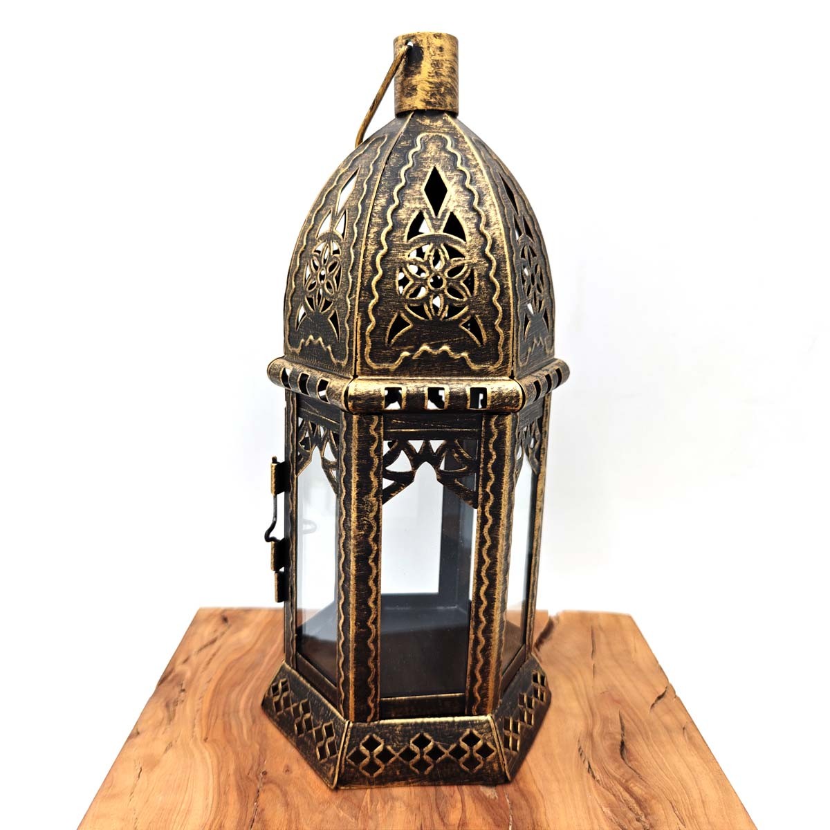 Farolillo Árabe Calado - Dorado Envejecido - 28 cm x 13 cm - Modelo 037