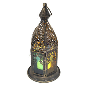 Farolillo Árabe Metal Portavelas Cristales Multicolor - Modelo Fanus