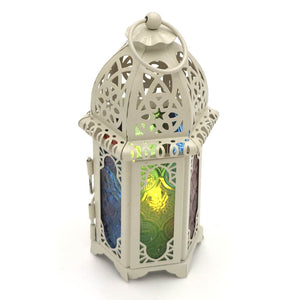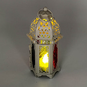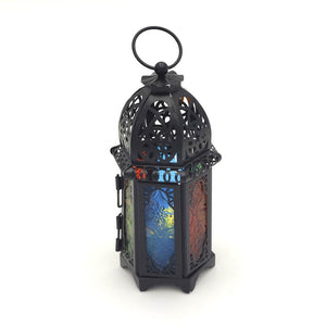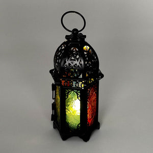 Farolillo Árabe Metal Portavelas Cristales Multicolor - Modelo taw'aman