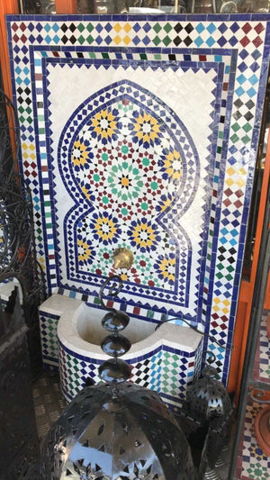 En Jaima Alkauzar podrás Comprar Online Fuente de agua hecha en mosaico con diseños árabes al mejor precio.