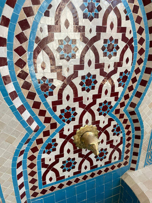 En Jaima Alkauzar podrás Comprar Online Fuente de agua hecha en mosaico con diseños árabes al mejor precio.