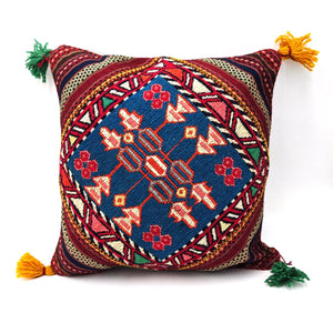El diseño Verni (sumak) es una ventana a la rica mitología de Mesopotamia, con dibujos de animalitos que simbolizan fuerza y sabiduría. Añade este cojín a tu colección de arte textil y embellece tu espacio con una pieza única y culturalmente significativa.