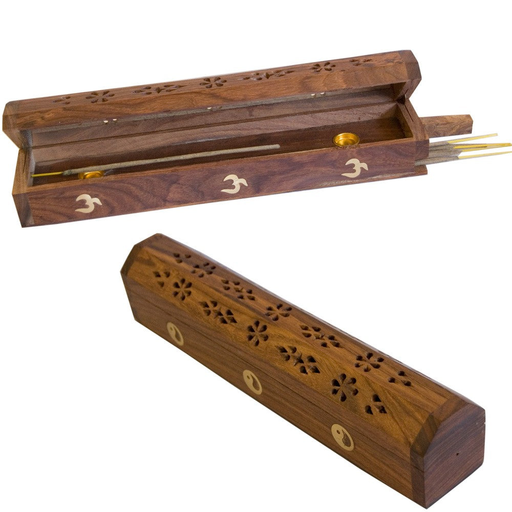 Incensario de madera para conos y varillas. Dispone de cajón para guardar el incienso. Muy bonitos.