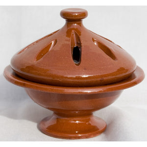 Incensario Brasero realizado en en cerámica esmaltada al estilo rústico para quemar incienso en grano o conos de incienso.