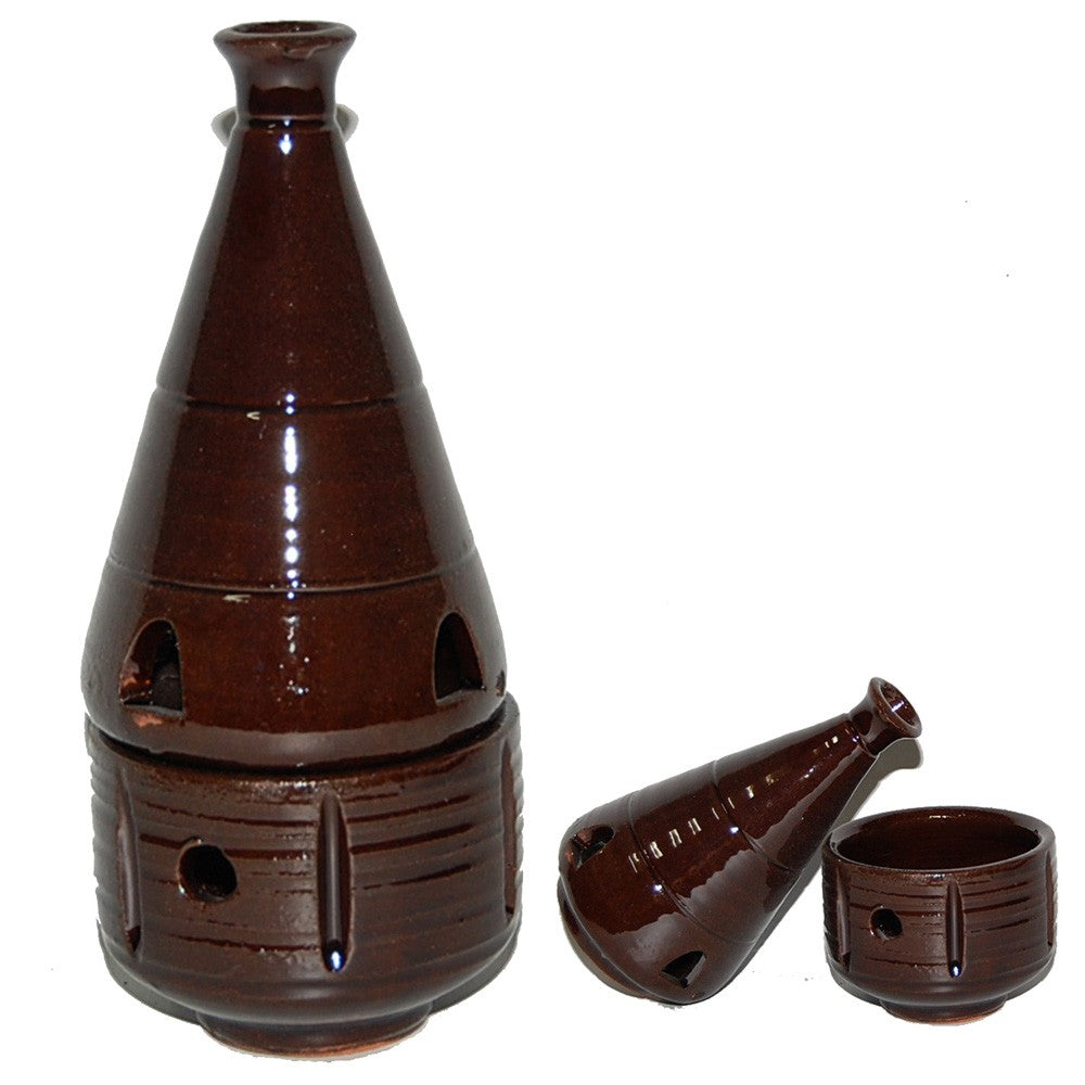 Incensario Chimenea Marrón-Incienso en Grano-Cerámica Esmaltada