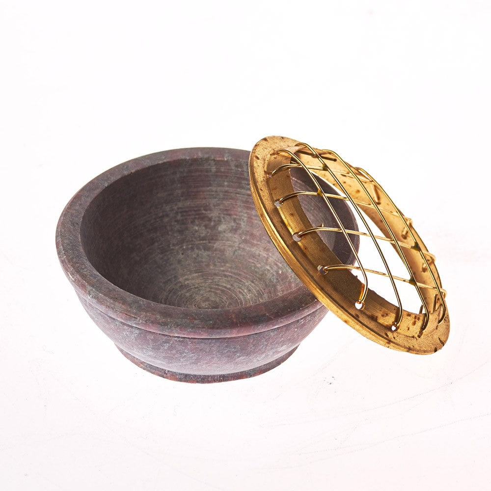 Incensario Piedra Jabonosa - Rejilas Bronce - 6 cm Diámetro