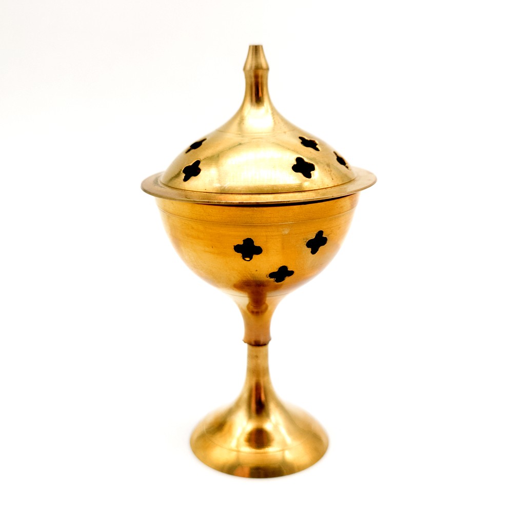 Incensario de bronce de sobre mesa, Realizado artesanalmente, hecho a mano, para uso doméstico y en la iglesia.