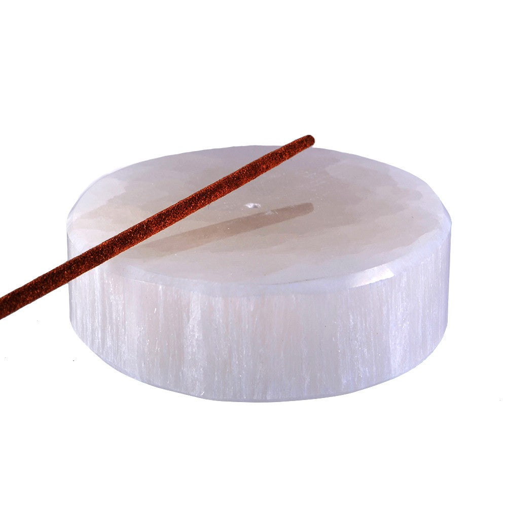 Incensario Selenita Pulida - Redondo - Roca Mineral - Para Varillas - 7'5 cm
