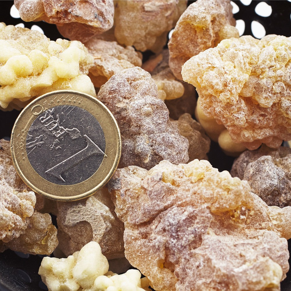 Incienso en grano troncos (olíbano-franquincienso), conocido como el incienso de la Biblia. Una de las ofrendas que los reyes realizaron a Jesús: oro, incienso y mirra.