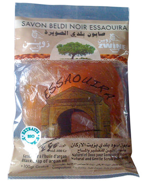 Jabón Negro con Aceite de Argan Clarificante Exfoliante Beldi de Marruecos Ecológico Bio Essaouira - Hamman - 500 gr ZWINE