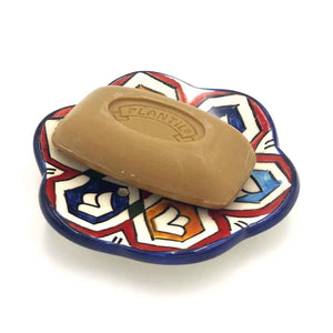 Jabonera marroquí decorada con colores muy vivos y alegres.