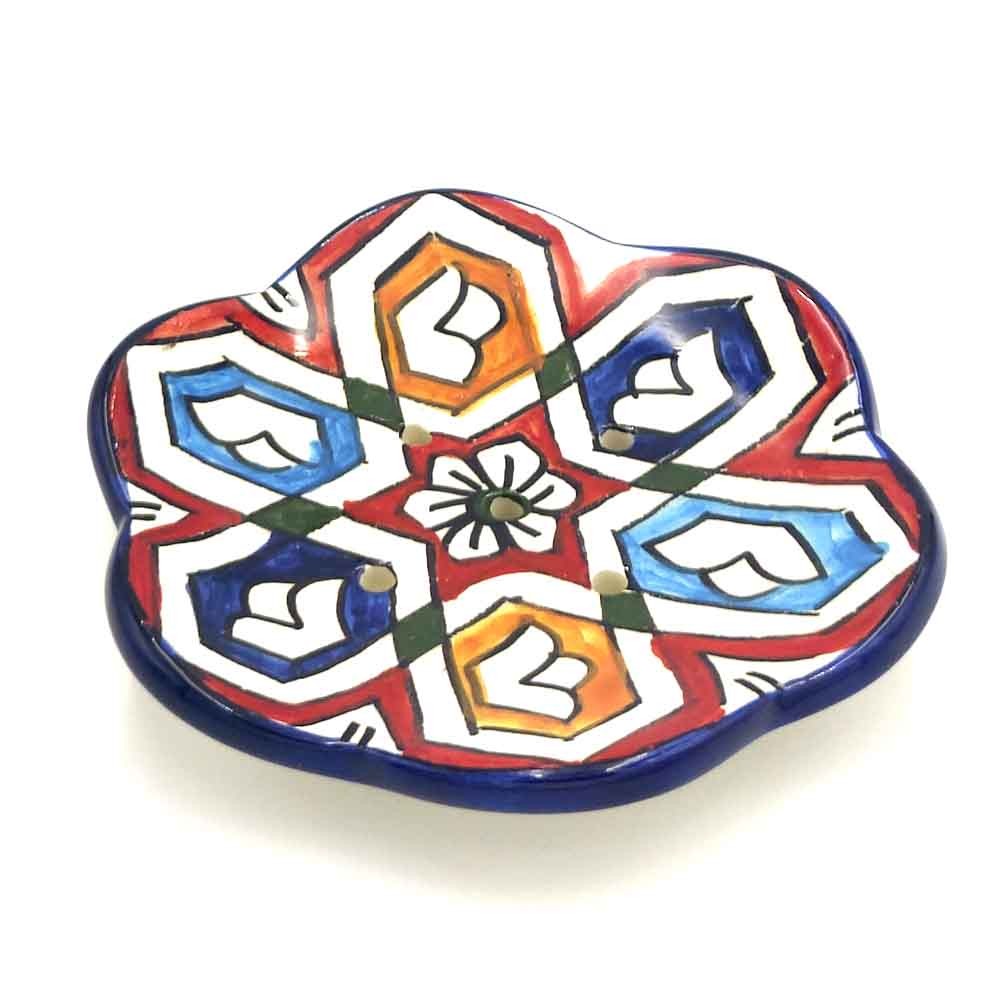 Jabonera artesanal realizado y pintado a mano con diseños inspirados en la cultura Berber y Tamasih del Rif de Marruecos.