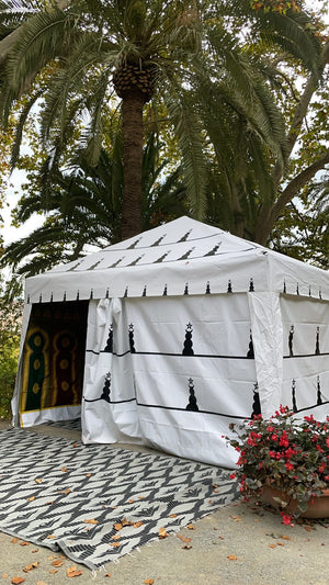 Medidas: 4,5 x 3 metros. Alto 3,5 metros (desde el suelo a la punta superior de la Jaima Marroquí)