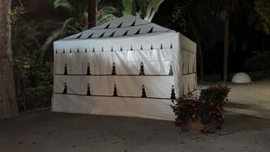 Preciosa Jaima Arabe rectángular de 4,5 x 3 metros realizada en lona de PVC con estructura de hierro.