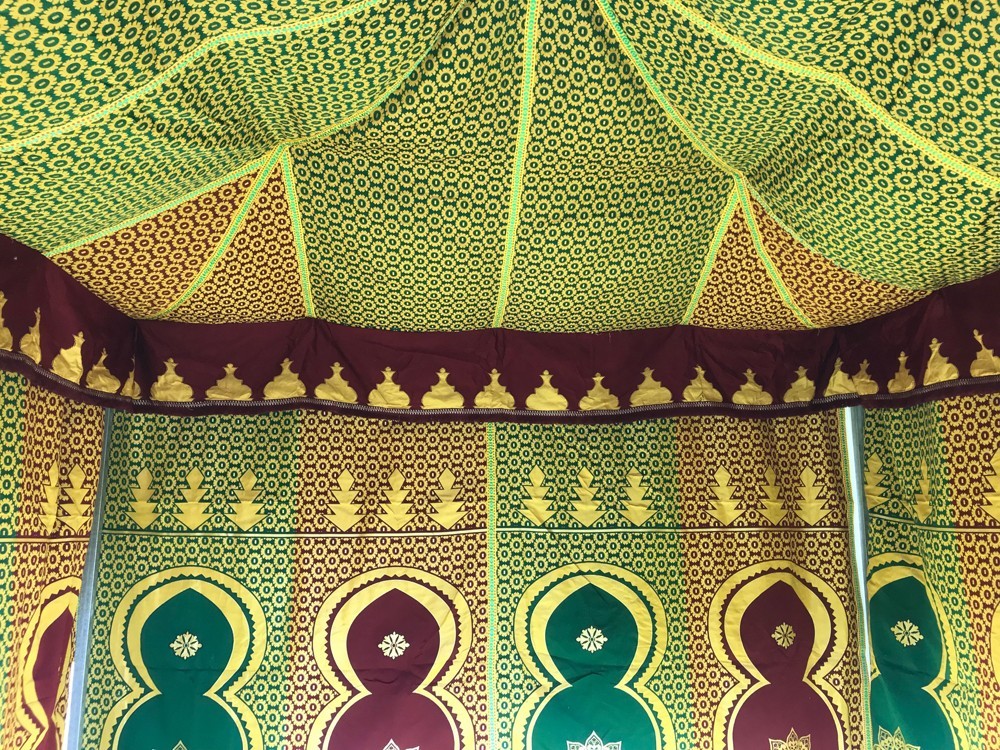 Preciosa Jaima Árabe cuadrada de 2 x 2 metros realizada en lona de PVC con estructura de hierro.