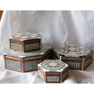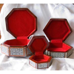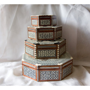 Joyero Octogonal Taracea Blanca Egipto - 5 Tamaños