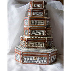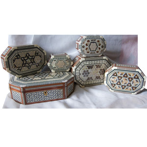 Joyero Ovalado Taracea Blanca Egipto - 6 Tamaños
