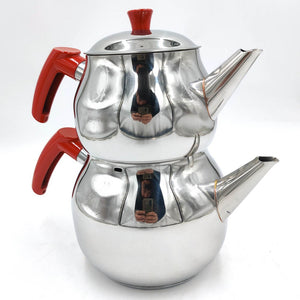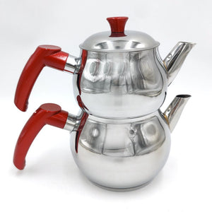 Juego de 2 teteras turcas para mantener el te caliente con la tetera de abajo, cada tetera tiene su tapa y son compatible para apilar