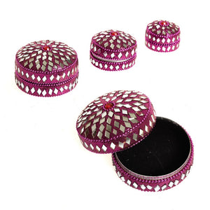 Juego 3 cajitas decoradas con brillantes y forradas interiormente en purpurina.