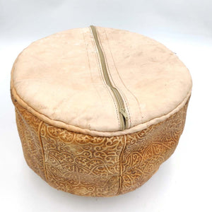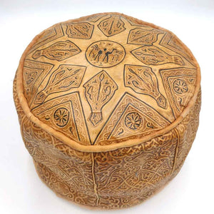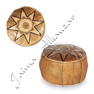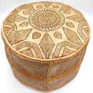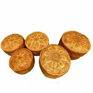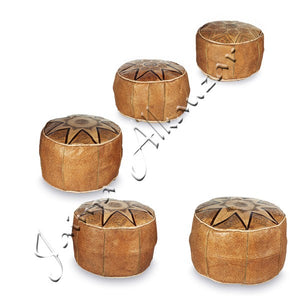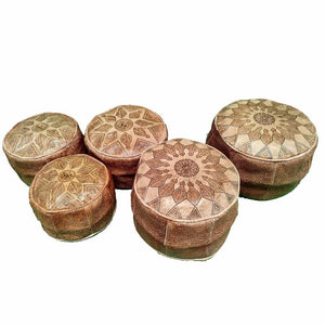 Juego 5 Puff Arabe Piel Camello - Grabados y Relieves Etnicos