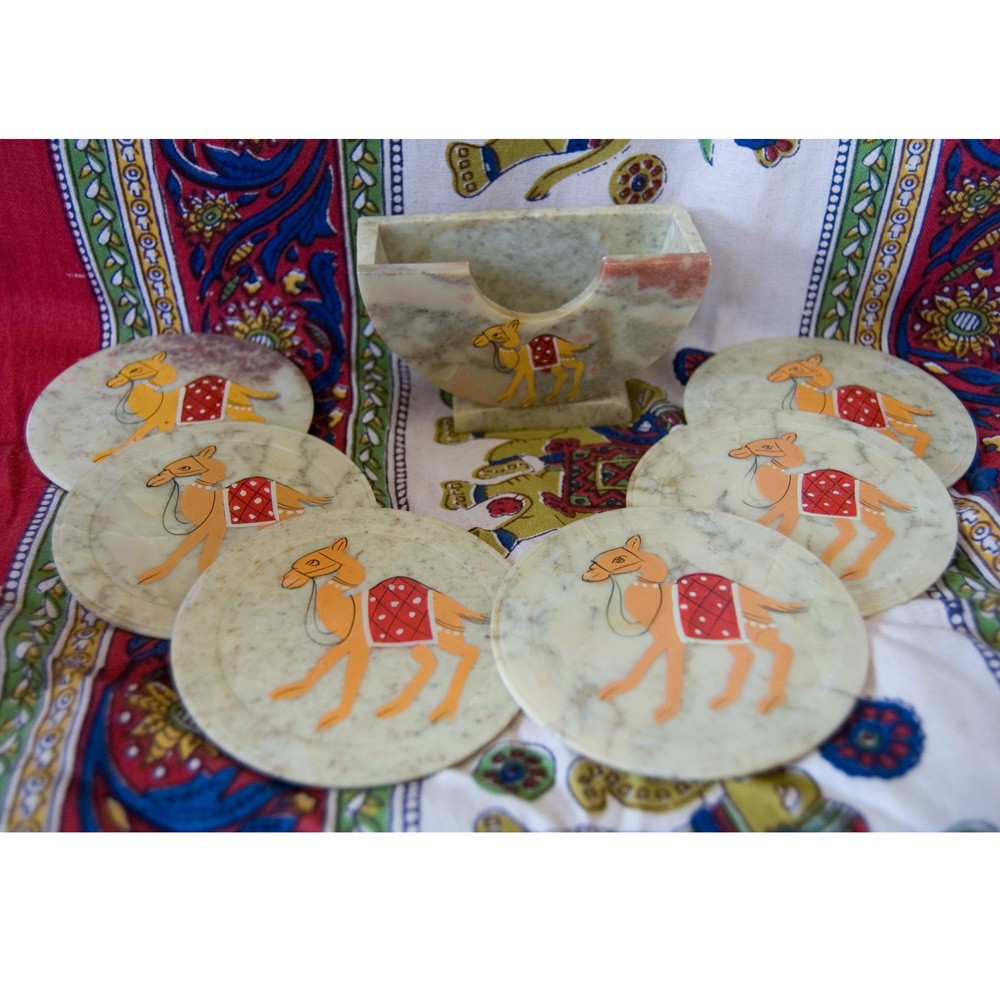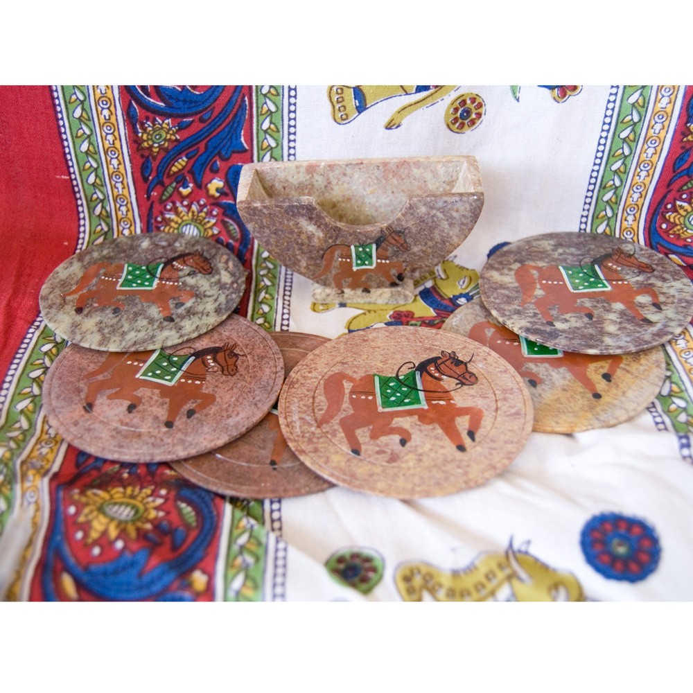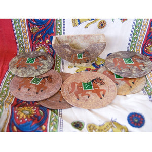Juego de 6 posavasos hechos en onix y pintados. Disponible varios dibujos. Muy bonita y muy bien acabada. Ideal para regalar.