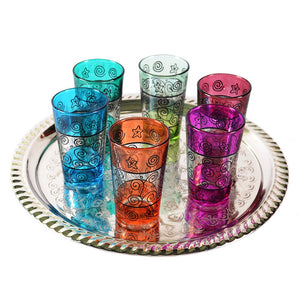 Juego 6 Vasos de Té Grabados - Filigrana Floral Henna - Diseño Marino
