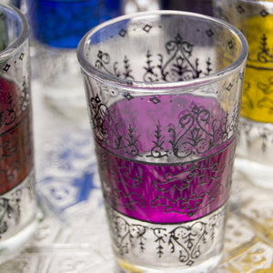Juego 6 vasos de té grabados en relieve artesanalmente mediante henna con motivos geometricos.