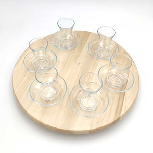 Set de 6 vasos de té turcos con su platitos de cristal templado transparente. Modelo simple sin decorados para disfrutar 100% del té sin adornos. Ideal para uso diario. Al servir el te negro turco creara un contraste perfecto para deleitarte con el sabor y aroma del te en unos vasos turcos de calidad.