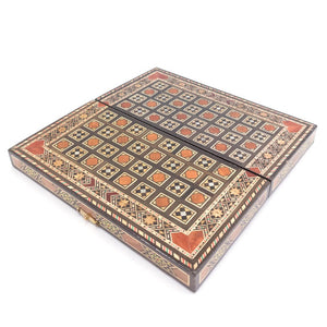 Juego Ajedrez Plegable + Fichas Madera (Taracea de Siria)