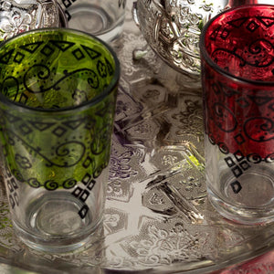 - Juego de 3 vasos árabes de colores surtidos decorados con henna,