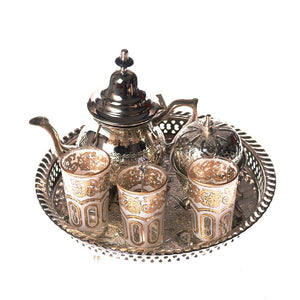 Juego de Té Arabe- Tetera - Bandeja Patas - 3 Vasos - Azucarero