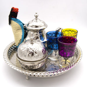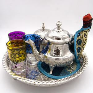 Juego de té Especial ModeloTánger - Tetera Gran Calidad + 6 Vasos - Azucarero + Morito + Salvamantel + Portavelas Turco REGALO
