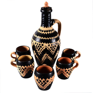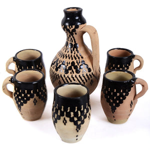 Juego Jarra Con Vasos - Estilo Bereber - Cerámica - Pieza Artesana
