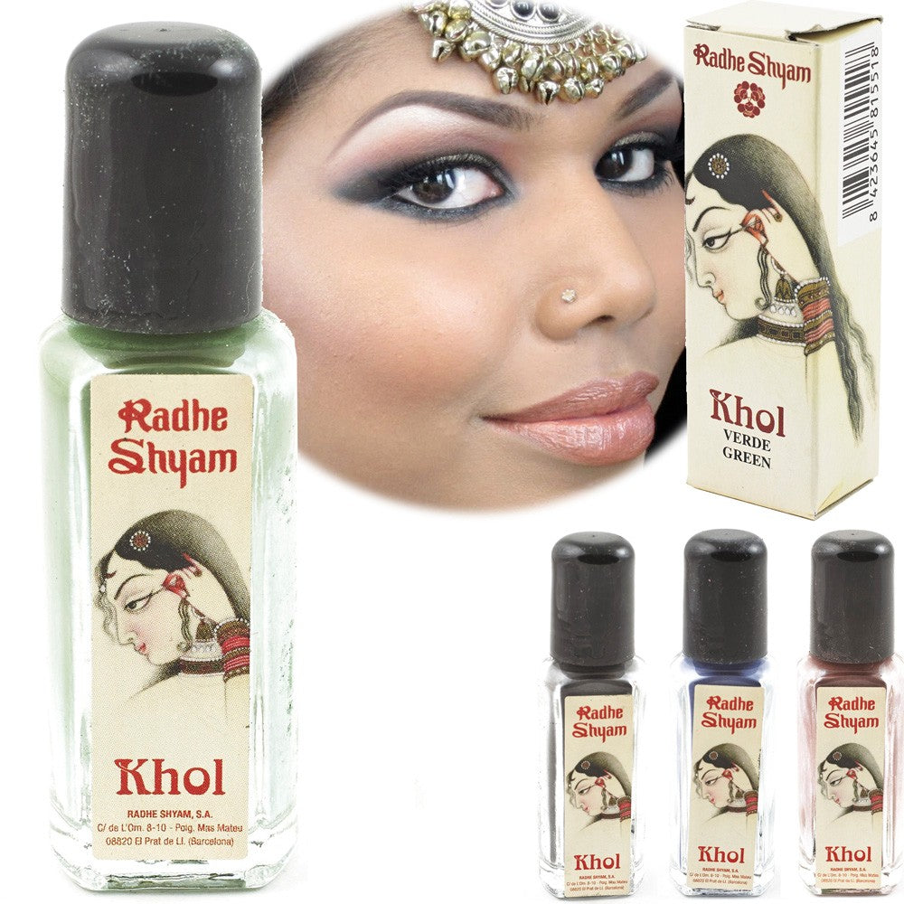 Khol en polvo de gran calidad fabricado por la conocida marca Radhe Shyam.Presentación de frasco de cristal transparente.Disponible en negro, azul, marrón y verde.El Khol es el maquillaje tradicional, utilizado en todo Oriente y en el Norte de