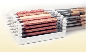 Incluye una pequeña estructura para colocar los kebabs de una forma fácil y ordenada.