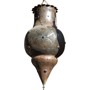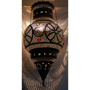 Pieza única. Una sola unidad. Lámpara andalusí gigante hecha en cobre antiguo calado con cristales de colores. De un ambiente único a su hogar o comercio.