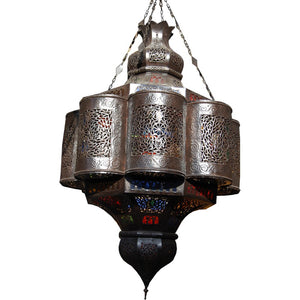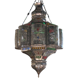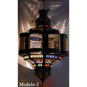 Lámpara andalusí gigante calado con cristales de colores. De un ambiente único a su hogar o comercio.