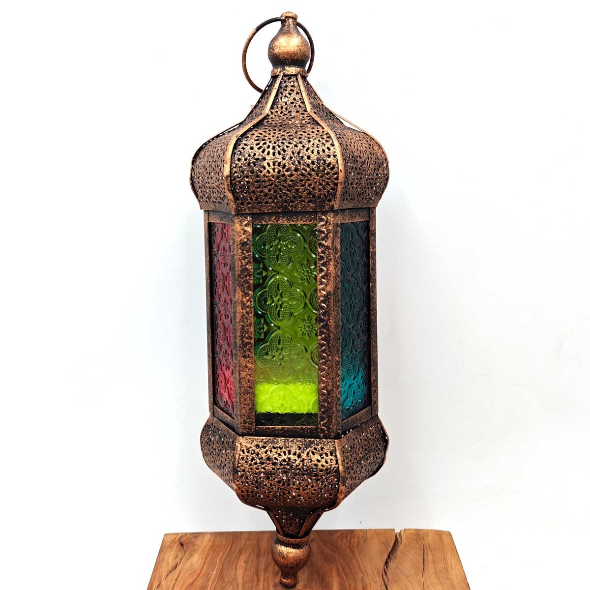 Lámpara Árabe Calada para colgar - Cobre envejecido - 42 cm x 15 cm - Modelo 983