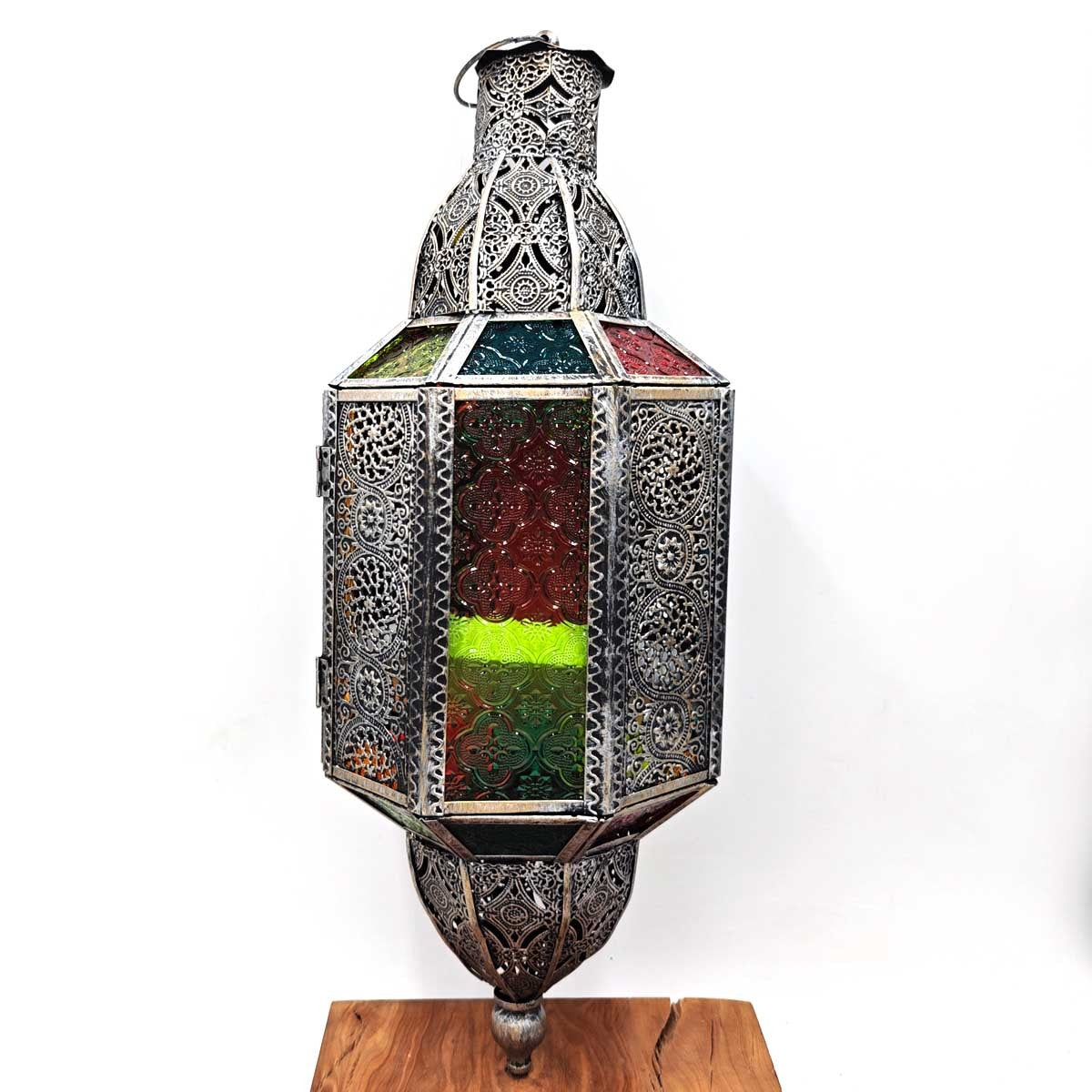 Lámpara Árabe Calada para colgar - Plateado Envejecido - 55 cm x 20 cm - Modelo 949